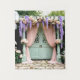 Transform any event into a storybook setting with this fairytale garden wedding backdrop tapestry. Featuring cascading wisteria, blush and ivory roses, vintage lanterns, and an elegant shabby-chic bench, this design creates the perfect romantic atmosphere for ceremonies, photo booths, bridal showers, or anniversary celebrations. Printed in high-quality detail, this tapestry makes a stunning statement piece for both indoor and outdoor events.