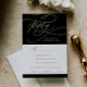 This romantic gold and black menu choice RSVP card is perfect for a simple wedding. The modern classic design features fancy swirls and whimsical flourishes with gorgeous elegant hand lettered faux champagne gold foil typography. This wedding response card conveniently asks guests what meal they would like at your reception.