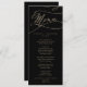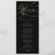 This romantic gold calligraphy black dinner menu card is perfect for a simple wedding. The modern classic design features fancy swirls and whimsical flourishes with gorgeous elegant hand lettered faux champagne gold foil typography. This menu can be used for a wedding reception, rehearsal dinner, or any event.