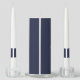 The Romantic Gold Calligraphy Navy Blue Wedding Unity Candle Set is an elegant and sophisticated choice for wedding ceremonies. This set includes a large navy blue pillar candle adorned with luxurious gold calligraphy, customizable with the couple’s names and wedding dates. Accompanying the central candle are two white taper candles, each featuring a matching navy blue band. The navy blue and gold combination creates a timeless and romantic aesthetic, perfect for couples seeking a refined and memorable unity ceremony accessory. This set adds a touch of elegance to the wedding and serves as a beautiful keepsake for the couple.