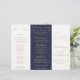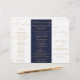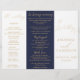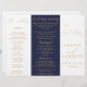 This Tri-fold wedding program features gold calligraphy lettering and a navy blue background. Personalize with your wedding details and please find matching designs from my "DreamHut" store.