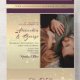 Elegant, modern calligraphy, romantic, luxury jewel tones, gold and purple wedding all-in-one invitation with faux gold floral lace and two pictures of the couple.