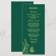 Unique simple wedding menu featuring romantic and elegant gold flowers on emerald green background