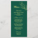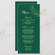 Unique simple wedding menu featuring romantic and elegant gold flowers on emerald green background
