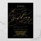 This romantic gold foil black frame wedding invitation is perfect for a simple wedding. The modern classic design features fancy swirls and whimsical flourishes with gorgeous elegant hand lettered gold foil stamped typography and a formal foil frame on a black background.