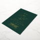 This romantic gold foil emerald monogram wedding invitation is perfect for a simple wedding. The modern classic design features fancy swirls and whimsical flourishes with gorgeous elegant hand lettered gold foil stamped typography on a dark emerald green background.