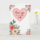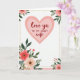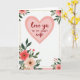 This greeting card features a large soft pink heart centered in the upper half, setting a sweet, close tone like a quiet look shared between partners ❤️. Inside the heart, the main words “love ya” appear in a flowing, cursive-style lettering, with “TO MY SWEET wife” placed alongside in a neat, simple uppercase font. A fine dotted gold border outlines the heart and also frames the outer edge, adding a gentle gleam without overpowering the soft colors. Around the corners, clusters of flowers in pastel pink and coral lean inward, as if they’re gathering around the message like a warm embrace 🌼. Deep green leaves and stems weave through the blooms, with small gold touches in the flower centers that catch the eye. The white background keeps everything airy, while a pale pink band traces the bottom and right edges for a subtle frame. The top-left corner shows the fullest floral cluster, and the bottom edge carries a sweeping line of blossoms and buds with gold-detailed centers.