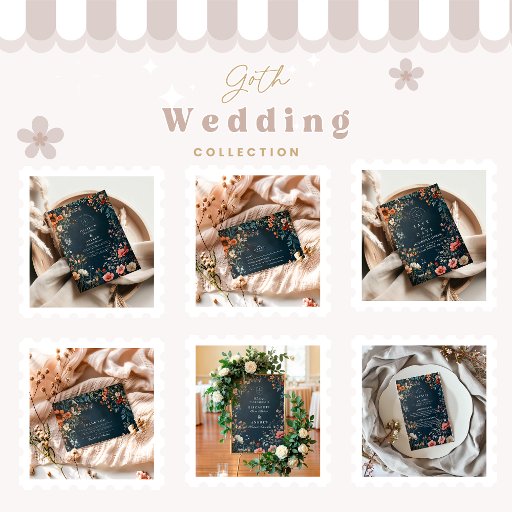 Celebrate your wedding with a moody, romantic Victorian gothic style. Featuring lush dark florals, antique tones, and vintage-inspired detailing, this design evokes the elegance of a bygone era with a dramatic twist. Perfect for fall ceremonies, Halloween weddings, or couples drawn to art nouveau, historic charm, and deep emotional aesthetics.