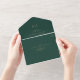 This romantic green calligraphy monogram wedding all in one invitation is perfect for a simple wedding. The modern classic design features fancy swirls and whimsical flourishes with gorgeous elegant hand lettered faux champagne gold foil typography. Hand write your guest addresses on the back of the folded invitation, or purchase coordinating guest address label stickers (sold separately).