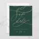 This romantic green calligraphy save the date announcement postcard is perfect for a simple wedding. The modern classic design features fancy swirls and whimsical flourishes with gorgeous elegant hand lettered faux champagne gold foil typography.