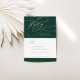 This romantic green calligraphy song request RSVP card is perfect for a simple wedding. The modern classic design features fancy swirls and whimsical flourishes with gorgeous elegant hand lettered faux champagne gold foil typography. Build your wedding guest list and your dance floor song list all at once! This wedding response card conveniently asks guests if they will be able to attend your wedding, and also what song will get them to dance.