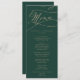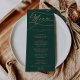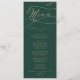 This romantic green calligraphy wedding dinner menu card is perfect for a simple wedding. The modern classic design features fancy swirls and whimsical flourishes with gorgeous elegant hand lettered faux champagne gold foil typography. This menu can be used for a wedding reception, rehearsal dinner, or any event.