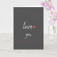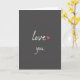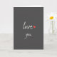 This card features a dark charcoal gray background with just a few simple details that say a lot. In the center, the words “Love you” are written in white, in a casual, chalk-like lettering style with slightly uneven lines. Right after the word “Love,” there’s a bright red heart that stands out as the only splash of color. The heart looks smooth and full, like a little pause that makes the message feel extra caring ❤️. With no other objects or scenery, the focus stays on the words and that small heart, which makes it feel honest and direct. It’s a meaningful card to give when you want to say something real without overexplaining, whether it’s for a partner or someone close to you. Share it to pass along a little Valentine’s Day love and kindness 🥰.