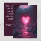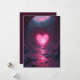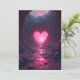 A heart-shaped cave frames a glowing pink sunset, creating a romantic and surreal atmosphere. Rocky walls and a wet path guide the viewer's eye toward the vibrant horizon.