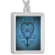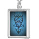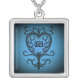 An elegant victorian scrollwork heart damask motif on a blue background for Valentine's day or any day. Printed on a pretty silver plated pendant necklace with space for your initial.