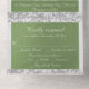 This romantic design features a sage green background with ribbon & glitter borders, a delicate silver scroll heart, script in elegant fonts. Perfect for the simple to most elegant wedding. Also available with different colored backgrounds for your wedding theme colors. (Ribbon & glitter are simulated in the artwork). Designed to coordinate with the "Romantic Scroll Hearts & Glitter Wedding" Collection. To change details, click «Personalize». To move the text or change the text size, font, or color click «Click to customize further»