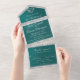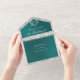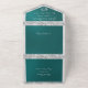 Romantic Heart, Ribbon & Glitter on Teal All In One Invitation