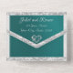 This romantic design features a teal background with ribbon & glitter borders, a delicate silver scroll heart, script in elegant fonts. Perfect for the simple to most elegant wedding. Also available with different colored backgrounds for your wedding theme colors. (Ribbon & glitter are simulated in the artwork). Designed to coordinate with the "Romantic Scroll Hearts & Glitter Wedding" Collection. To change details click «Personalize». To move the text or change the text size, font, or color click «Click to customize further»