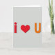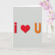 This card keeps things simple with the message “i ❤️ U” centered across a light grey background. The lowercase “i” is a rich red, and the heart symbol is the same red, making the message feel warm right away 🥰. The “U” is uppercase and deep orange, which adds a little contrast while still feeling friendly and affectionate. All three characters sit in a straight horizontal line, spaced evenly like a short note you’d write on purpose. Each element has a soft shadow underneath, so they look slightly raised off the page. The letters look like smooth, modern print, not fancy, and the heart stands in for the word “love.” It’s meaningful because it says a lot with just a few characters, making it easy to give to a partner or a close friend ❤️.