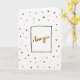 This card features the words “i love you” in sparkling gold glitter lettering at the center. A simple black rectangle with slightly uneven, hand-drawn lines frames the words, making the middle feel like a sweet note. The background is white, with small hearts scattered around in soft pink shades and a few outlined in black. The hearts look casually sketched, which makes the whole design feel honest and close to the heart. The gold text catches the light, while the little hearts add a gentle, cozy touch 🥰. It’s a meaningful card to give because it says what you feel in a direct, caring way, without needing anything complicated. The layout keeps your attention on the message, and the scattered hearts make it feel like love is all around ❤️.