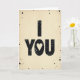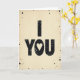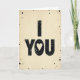 This card centers on the message “I ❤️ YOU” in large black capital letters on a creamy beige background. The “I” sits above “YOU,” making the words easy to read at a glance. A red heart takes the place of the “O” in “YOU,” so the love message is part of the lettering itself 🥰. The black letters have tiny white speckles across them, giving them a slightly worn, star-dusted look. Around the edges, an uneven border of dark dots and flecks frames the design like an older printed page. It feels meaningful because it says what you mean in a simple, direct way, without needing anything extra ❤️. Share it to send warm Valentine’s Day feelings to someone you care about.