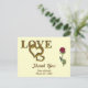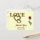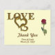 Love Hearts and Red Rose Thank You Postcard that includes a thank you note on the back of this card. A single red rose is shown on the side. Keep this quote or customize your own. Change the font and color of the text. Change the background image or color if you would like to..