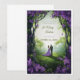 Step into a fairytale with this breathtakingly beautiful wedding invitation. Perfect for a garden or nature-inspired wedding, this invitation features a romantic illustration of a couple walking hand-in-hand through an enchanted forest. The rich purple floral archway creates a stunning frame, leading the eye into a soft, misty background that feels both mystical and inviting.