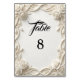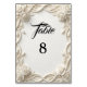 Guide your wedding guests with sophisticated elegance. These table cards feature a stunning faux bas-relief design, blending timeless romance with modern print quality.Experience the look of high-end masonry without the weight. This design showcases a realistic, printed simulation of 3D bas-relief artistry. The visual composition features a border of sculpted cream roses, rosebuds, and intertwining vines set against a smooth beige background, mimicking the texture of vintage plaster or carved stone. Crisp black calligraphy script and bold serif numerals provide high-contrast readability against the monochromatic ivory palette.This is a flat printed image with a high-definition visual texture effect. It does not contain actual raised embossing, plaster, or 3D materials.