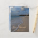 Simple and sweet beach wedding announcement on a tropical beach photo postcard. Blue sky, sandy beach and turquoise ocean with space to upload your own wedding photo.
