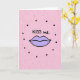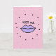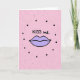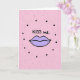 This greeting card shows a pair of plump lips in soft lavender, outlined in black, centered on the front. Above the lips, the words “KISS me.” appear in casual, handwritten-style lettering in black, placed near the top. The background is blush pink and covered with scattered dots that add texture. Some dots are larger, solid black circles that sit mostly around the lips like a loose ring, while others are smaller and lighter pink specks spread across the card. The lips look gently puckered, giving the design a sweet, flirty feel without needing anything else. The unusual lavender color makes it feel modern and a little unexpected, which can be a fun way to show affection 🥰. It’s a simple card to give when you want to nudge someone closer or share a warm moment with a friend ❤️, and it’s perfect for sharing Valentine’s Day sentiments.