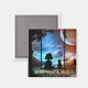 A delightful gift: personalized magnet featuring a little girl and her kitty on a swing overlooking a fantasy landscape with moon. Beautiful for Valentine's Day or another romantic or sweet occasion.