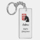 Cute and cool keychain with a knight and shield design. Red, black and white palette. Personalize with your knight's name!