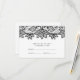 Elegant wedding RSVP card features a beautiful black lace design over a white background and simple black text.