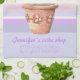 Romantic, chabby chic style kitchen towel, featuring a lavender in a pot illustration and custom text on a pastel color, striped background, designed by PiccoGrande.
