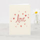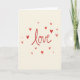 This card shows the word “love” in the center, written in flowing red lettering that looks like it was painted with a brush. Around the main word, small red hearts are scattered in different sizes and angles, like a light sprinkle across the page. The hearts have slightly uneven edges and visible brush texture, which makes them feel warm and human. Everything sits on a creamy off-white background that keeps the focus on the red details. The red color ranges from lighter to deeper tones, giving the design a gentle sense of movement without feeling busy. It’s a simple way to say a lot, making it easy to give to a partner, a close friend, or anyone you care about 🥰. The centered “love” message makes the point right away, while the hearts around it add a soft, affectionate touch ❤️.