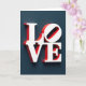 This greeting card features the word “LOVE” as the main design, shown in big 3D letters that feel like they’re popping forward. The letters are stacked with “LO” on top and “VE” below, and the “O” is tilted for a fun, romantic touch. Each letter has a white front face with sharp edges, while the sides are a deep red that adds warmth and depth ❤️. The background is a dark blue-green color that makes the white and red stand out clearly. A light from the upper left creates gentle shadows that stretch down and to the right, helping the letters look solid and real. The only text on the card is “LOVE,” and it appears centered on the front in thick, simple letter shapes rather than fancy lettering. It’s a straightforward, sweet way to say what you feel, so go ahead and share the love this Valentine’s Day 💕.