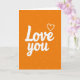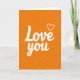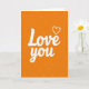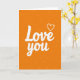 This design shows the words “Love you” in flowing white cursive across the center of a bright orange background. A small heart outline made of tiny white dots sits above and to the right of the words, like a sweet little accent. The orange backdrop has a repeating pattern of slightly darker orange shapes that look a bit like small clovers or simple flowers scattered all over. The white lettering and dotted heart stand out strongly against the orange, making the message easy to notice right away. It feels warm and caring without needing any extra images, just a simple note of affection ❤️. This card works well for a partner, a close friend, or anyone you want to remind that they matter. It’s meaningful because the short message is direct, and the bright colors help it feel upbeat and loving 🥰. Hope it helps you share Valentine’s Day feelings in a kind, honest way.