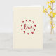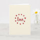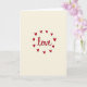 This card shows the word “love” written in flowing cursive-style lettering in deep red at the center. Around it, a circle of small red hearts wraps the word like a gentle hug. The background is a creamy off-white, which makes the red stand out clearly without feeling loud. The letters and hearts have slight uneven edges, like they were drawn by hand, which makes the message feel more personal. The design is simple, but it still feels romantic and full of care ❤️. It’s a meaningful card to give when you want to say “I’m here, I care about you,” without needing a lot of extra words 🥰. It ends on a warm note that’s easy to share for Valentine’s Day.
