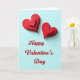 This Valentine's Day card shows two layered red hearts near the top, each built from several smaller heart shapes stacked inside one another. The layers create gentle shadows, so the hearts look raised and almost floating. Behind them is a smooth, light blue background that feels calm and open. Below the hearts, the words “Happy Valentine’s Day” appear in red, written in a flowing cursive style and centered near the bottom. The simple layout keeps your focus on the hearts and the message without feeling busy. It’s a sweet choice for a partner, close friend, or anyone you care about, because it says a lot with just a few elements 🥰. Share it to pass along a little love and kindness this Valentine’s Day ❤️.