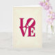 This card features the word “LOVE” stacked in two lines, with “LO” above “VE,” centered on the front. The letters are a deep magenta and look smooth and strong, with a soft shadow that makes them stand out a little from the page. Behind the word is a creamy beige background with faint, curling pattern details that look like old wallpaper or vintage stationery. Small speckles are scattered around the background, adding a gently worn, cozy feel. The message is simple, but it says a lot, which makes it easy to give to a partner, a close friend, or anyone you care about 🥰. “LOVE” appears in large, uppercase letters in the middle of the card, so it’s the first thing they’ll see when they open the envelope ❤️.