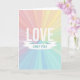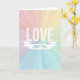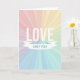 This greeting card centers on the big white word “LOVE” in simple, modern letters across the upper middle. Behind it, soft bands of color spread outward like a sunburst, starting near the bottom center and reaching to the edges. The colors move gently from blush pink to pale yellow, mint green, and light sky blue, with each strip fading into the next. The layered look gives a little depth, like stacked paper shapes with light shadows. Below “LOVE,” there’s a white ribbon banner with pointed ends, and it reads “ONLY YOU” in teal letters. The overall picture feels calm and caring, like a quiet reminder that one person matters most 🥰. It’s a meaningful card to give when you want your affection to feel clear and steady, without needing a lot of extra words ❤️. Wishing you an easy way to share Valentine’s Day with someone you care about.