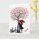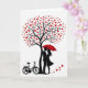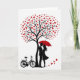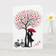 This greeting card shows a couple in black silhouette standing close together, holding each other with their faces nearly touching under a bright red umbrella ❤️. Behind them is a tree with branches filled with many red heart shapes, like the tree is growing love instead of leaves. The background is white, which makes the red umbrella and hearts stand out and keeps the scene easy to take in. A simple bicycle sits near the tree, hinting that they arrived together and paused for a quiet moment. A few small hearts float near their feet, adding to the feeling of closeness and care. There isn’t any visible text on the front, so the picture carries the message on its own in a direct, gentle way. It feels meaningful to give because it captures that calm, private kind of affection that doesn’t need many words 🥰. Share it to pass along your Valentine’s Day feelings in a warm, sincere way.