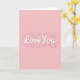 This Valentine's Day card features a soft pastel pink background with the words “Love You” centered in white, flowing letters. The lettering has a faint shadow that makes it look slightly raised from the page. Around the main words, thin white curls and loops sweep outward like gentle flourishes. Small white hearts are scattered across the card like little confetti, filling the space without crowding it. The whole design feels calm and tender, like a quiet moment you want to share with someone close 🥰. It’s a meaningful card to give because it keeps the message simple and direct, while the hearts and curls add extra care and affection ❤️. Share it to pass along your Valentine’s Day feelings in a sweet, easy way.