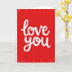 This design shows a deep red background with the words “love you” in white cursive-style lettering right in the center. Each letter has a thin dashed black line running through it, like a stitched seam that adds a gentle, thoughtful detail. Small white dots are scattered around the words, like tiny confetti or soft snow, giving the space a light, sweet feel. The message is simple and direct, but the stitched look makes it feel more caring and intentional. The strong red-and-white contrast makes the words easy to read and keeps the focus on love. It’s the kind of card that works for a partner, a close friend, or anyone you want to hold a little closer 🥰. Giving it says “I mean this” without needing a long note, and it still feels tender ❤️.