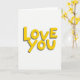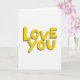 This card keeps things simple with the words “LOVE YOU” as the main focus. The letters sit right in the center on a plain white background, so your message is the first thing anyone sees. Each letter is a warm yellow with rounded edges, giving the words a friendly, easygoing look. Behind the letters, there’s a dark gray shadow made of short hatch marks that makes the text look slightly raised. There are no other objects or characters, which helps the message feel direct and honest. The wording looks like casual hand lettering rather than a formal font, and it feels like something you’d say out loud without overthinking it 🥰. It’s a meaningful card to give because it says exactly what you feel, whether it’s for a partner, a close friend, or someone you care about ❤️.