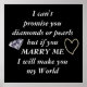 Romantic proposal poster "I can't promise you diamonds or pearls but if you marry me I will make you my World." Decorated with image of diamond and pearl necklace in shape of a heart.