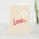 This card keeps things simple with a warm beige background and a clear message in the center. The words “LOVE YOU” appear in strong red letters with a brush-painted look, giving it a direct, from-the-heart feel ❤️. The text sits right in the middle, so your eyes go to it first without any distractions. In the upper right area, four small white hearts float upward, each one slightly uneven like they were drawn by hand. That little cluster adds a gentle, airy touch and makes the space feel light and caring. The contrast between the red words and the soft background makes the message easy to read and hard to miss. It feels meaningful to give because it says exactly what you want to say, whether it’s for a partner, a close friend, or someone you miss 🥰.