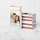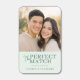 This wedding matchbox features a warm, intimate photograph of two individuals smiling closely together during the golden hour, creating a joyful and romantic atmosphere. The design includes a mint green section with elegant script typography that reads "The Perfect Match," adding a touch of whimsy and personalization to the layout. The color palette combines soft natural tones from the photo with the fresh contrast of mint green, enhancing the overall celebratory mood. Ideal for weddings or engagements, this design captures the essence of love and connection in a stylish and modern way.