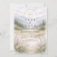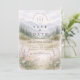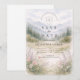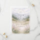 A serene and atmospheric design inspired by misty mountain landscapes and quiet forest scenery. Soft watercolor layers of pine trees and distant hills fade gently into the background, creating depth and a calm, romantic mood. The muted palette of sage green, cool grey, and soft ivory gives the design a refined, nature-driven elegance—perfect for couples drawn to minimalist aesthetics and intimate outdoor celebrations.