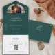 A modern and romantic mood-trending design in a dark emerald green adorned with botanical and calligraphy script accents. Follow the guide above to replace personal wedding details including your favorite photo. An all-in-one wedding invitation that includes an rsvp card with an option to scan the QR code, and/or visit your wedding website.